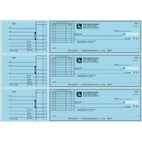 Multi-purpose draft check without lines. The three checks per sheet format saves toner, paper and space.